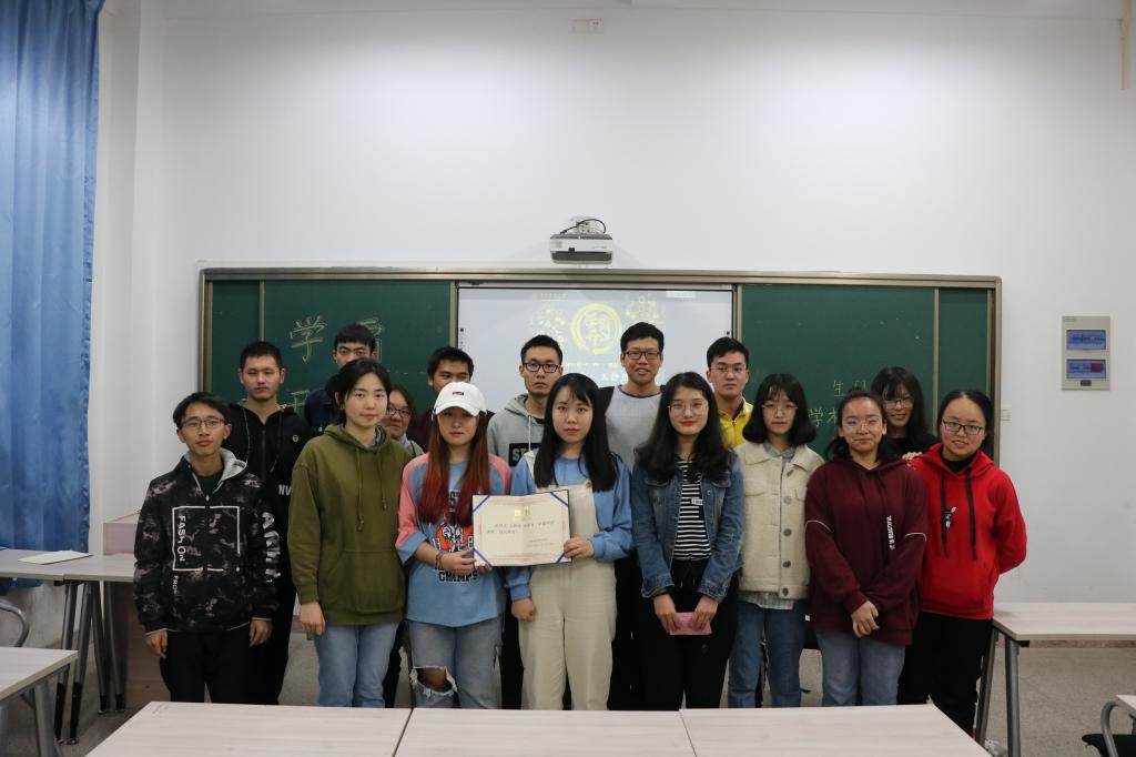 精彩的演讲结束后,由学术科技部代表给王静然学姐颁发聘书和赠送小礼品,学姐同在场同学合影留念。