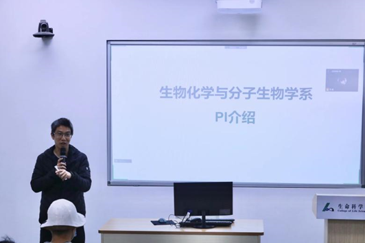 活动伊始,殷平用详实的数据和生动的案例介绍了一流学科建设情况以及我校在生物学领域的学术贡献,并鼓励同学们打开眼界,瞄准世界研究前沿,找准目标不断向前。随后他结合生物化学与分子生物学方向详细介绍了12位教授的研究进展,也建议同学们主动和老师交流,共同探讨科学问题,找准发展方向共同寻求突破。