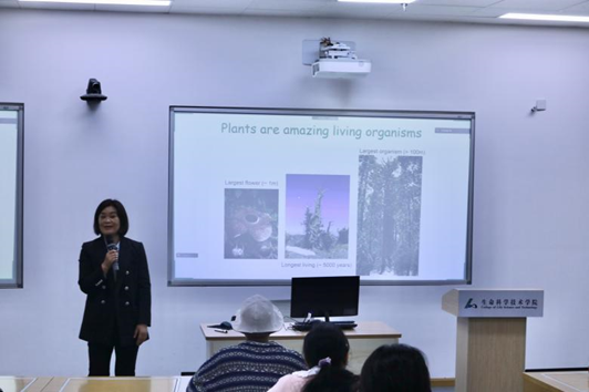 胡红红从大自然的植物出发,展示了不同植物的千姿百态,并结合衣食住行讲述了植物与人类的关系。她谈道:“不论是植物的开花时间,还是抗性、产量这些性状,都由神秘的基因来控制,破解其中的调控机制也会给生物学界带来新的进展和突破。”随后她结合课题组相关研究向同学们详细介绍了学科方向相关情况。