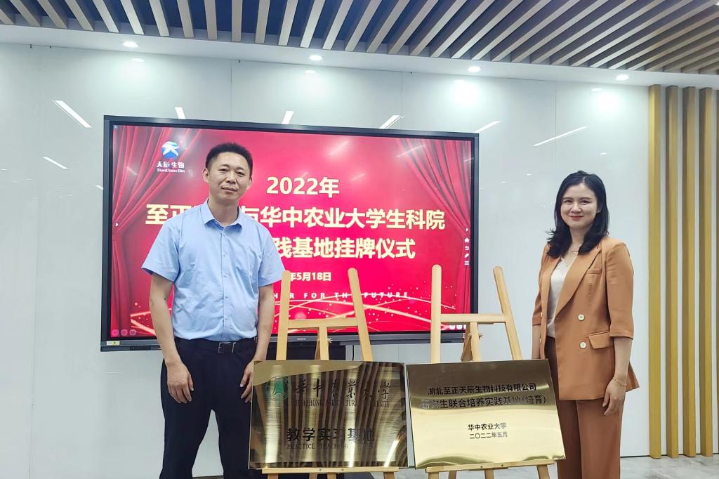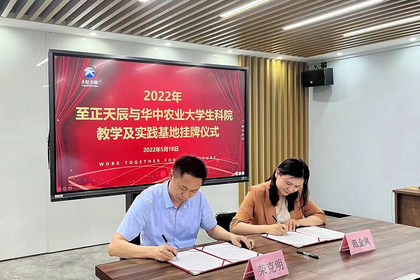 随后,在基地办公楼会议室举行了教学及实践基地挂牌仪式。仪式上,范金凤、荣克明签署研究生培养实践基地协议,共同为“新葡萄8883官网AMG教学实习基地”和“新葡萄8883官网AMG-湖北至正天辰生物科技有限公司研究生联合培养实践基地”揭牌。