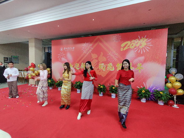 在抽奖环节,硕士生管雨豪和博士生欧雅娟分别在抽奖环节中获得了手环和蓝牙耳机。管雨豪同学表示留校过年、别样温暖,写下新年心愿:希望正在读这句话的人永远开心。欧雅娟同学谈到:“团拜会现场有机会欣赏到来自国内外同学们的才艺表演,缅甸舞、戏剧·梨花颂、歌曲不忘初心、好运来等,在学校温暖的大家庭与老师同学们度过了一个热闹的春节。”