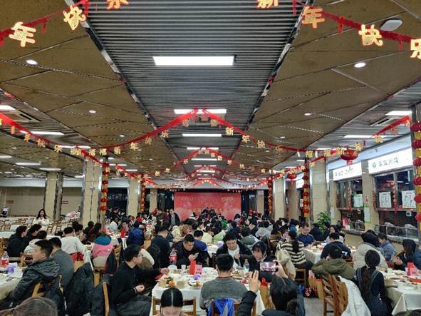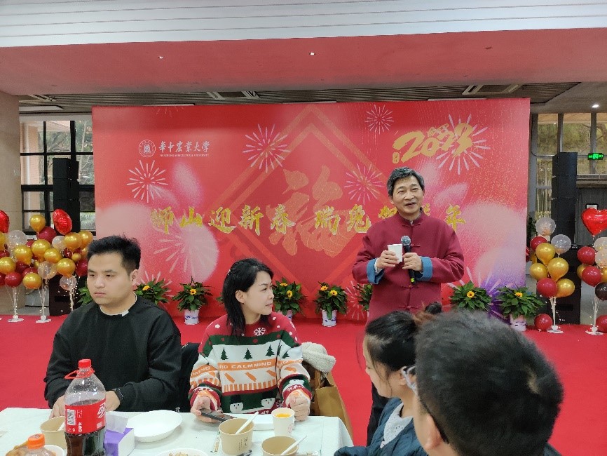 (通讯员:川竹 汤智德 吴佳姗)金虎辞旧岁,玉兔迎新春。1月21日是农历癸卯兔年除夕,学校在竹苑食堂一楼餐厅开展春节团拜活动,校党政领导班子成员与留校学子一起吃年饭、过大年。学院党委书记范金凤、导师代表曹扬荣教授与学院17名留校学生代表参加团拜会。