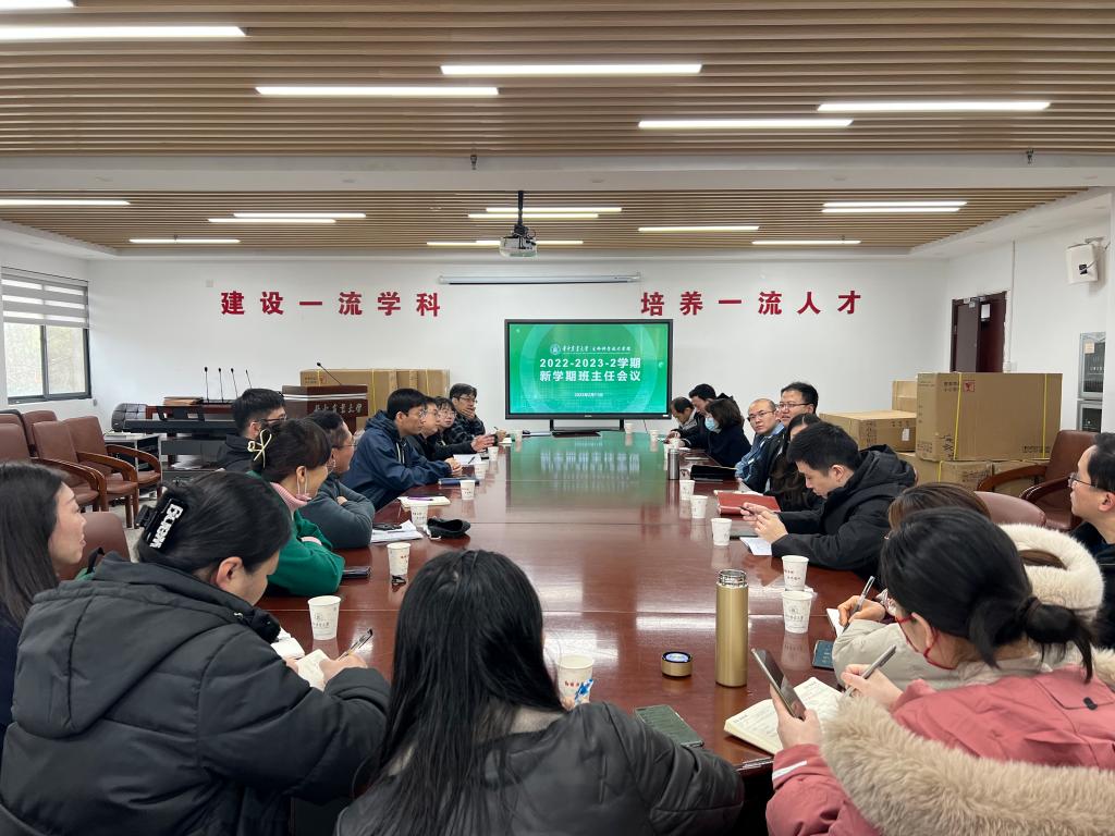 (通讯员:王庆鲁、杜媛媛)2月11日,学院在第一综合楼A202会议室召开春季学期班主任工作会议,交流研讨新学期学生思想引领、学风建设、日常管理与教育服务工作。学院党委副书记赵凯博,2021级、2022级班主任与辅导员参加会议。