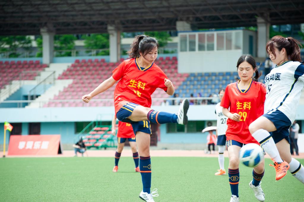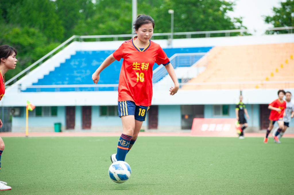 动科动医队延续上半场的战术,试图通过快速的进攻找到我方破绽。门将史罗西在防守过程中扑出对方关键一球。25号球员谭草意与16号球员毛徽灵配合,及时打断对方球员进攻。前场球员罗雅云把握时机,将球带入禁区,给对方防守球员造成巨大压力。距离比赛结束仅剩五分钟时,比赛局势突变,对方角球补射将球打入我方球门。我方调整状态,快速组织进攻。20号球员罗雅云主罚角球被对方挡出,我方球员补射一脚,打中对方门柱未能得分,不免令人感到可惜。最终,本次决赛生科女足以一分之差惜败动科动医,取得了“狮子山杯”女子足球赛亚军。