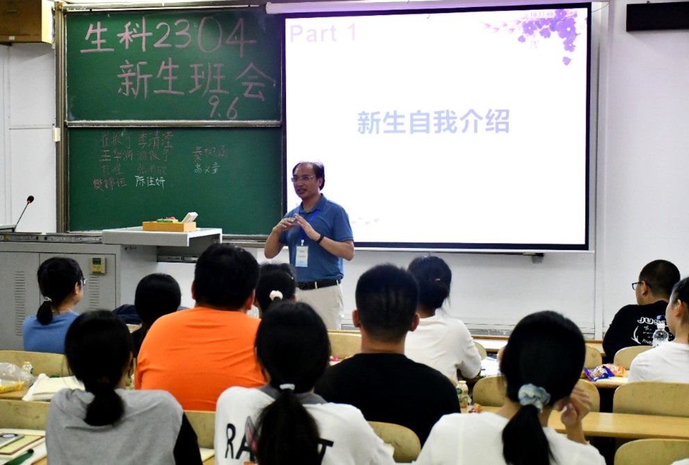 “未来我想要保研,在生命科学的道路上越走越远”,熊立仲院长来到生工2301班时,一位同学正畅谈对华农的憧憬和对未来的期待,班会气氛十分活跃。“大家填志愿之前有没有想清楚生命科学技术是什么?”熊立仲很快与大家交流起来,结合正在进行的国际交流会议,与新生共话生物工程学科前景,勉励大家在大学期间好好去学、好好去探索,把握学校搭建的学术交流平台,找到为之奋斗一生的事业,不断地在人生路上“激扬梦想,追求卓越”。院长熊立仲先后走访了几个新生班级,祝愿新生们能够坚定对自己的信心、对老师们的信心,开心、充实地度过本科时光。
