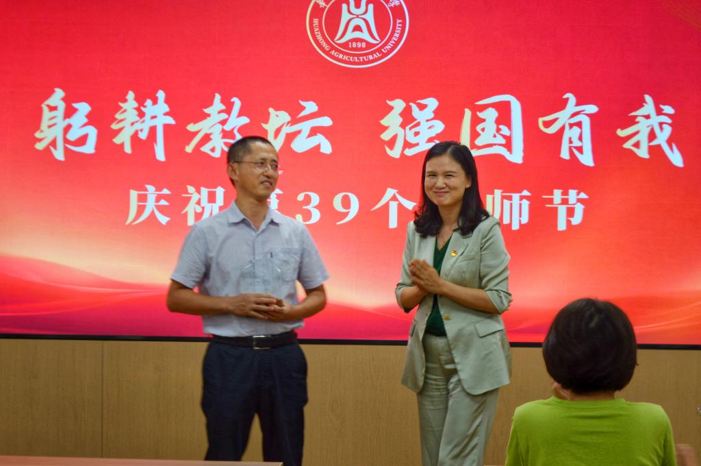 活动伊始,范金凤代表学院向对躬耕教坛、教书育人的各位教师表达崇高敬意和由衷感谢,向高友军老师颁发“光荣从教30年”纪念章,并为2020年至2023年入职学院的青年教师颁发聘书,为每位与会教师赠送了《我在北大当教授》一书。活动现场,学生代表为老师们献上节日的鲜花,表达他们衷心的感谢与诚挚的祝福。