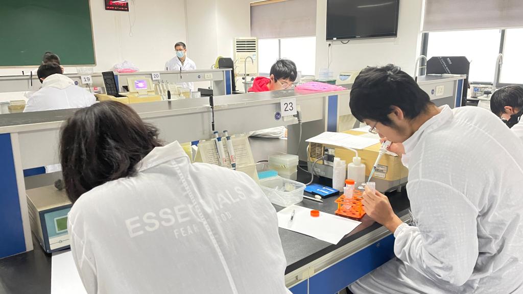 本次竞赛包括生物化学实验和遗传学实验两个科目,采取自愿报名方式,经过以班级为单位的初选,最终选取33位同学参加生物化学实验竞赛,32位同学参加遗传学实验竞赛。竞赛中每一环节都有详细的评分标准,老师们通过观察学生仪器使用的规范性、操作的正确性以及结果的准确性等方面,现场评判打分。本次竞赛不仅对学生的理论知识、实验设计、动手能力等方面进行了严格考察,同时也锻炼了同学们沉着冷静、随机应变的能力。