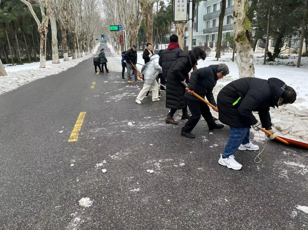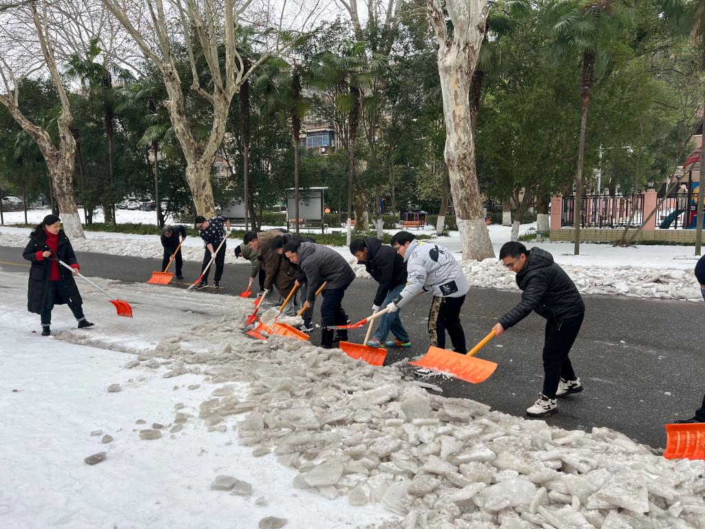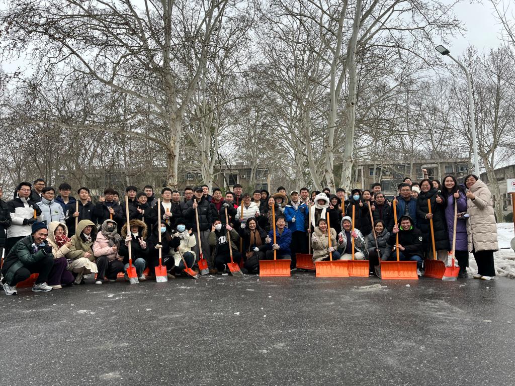 2023级博士生李宝龙在铲雪结束后说到,“这场除冰铲雪的行动不仅有机会和老师们团结协作共同劳动,也能为学校道路正常运行而贡献微薄力量,同学们感到特别自豪。在这个过程中,师生们共同度过了一段难忘的时光。守卫狮山,有你有我。”