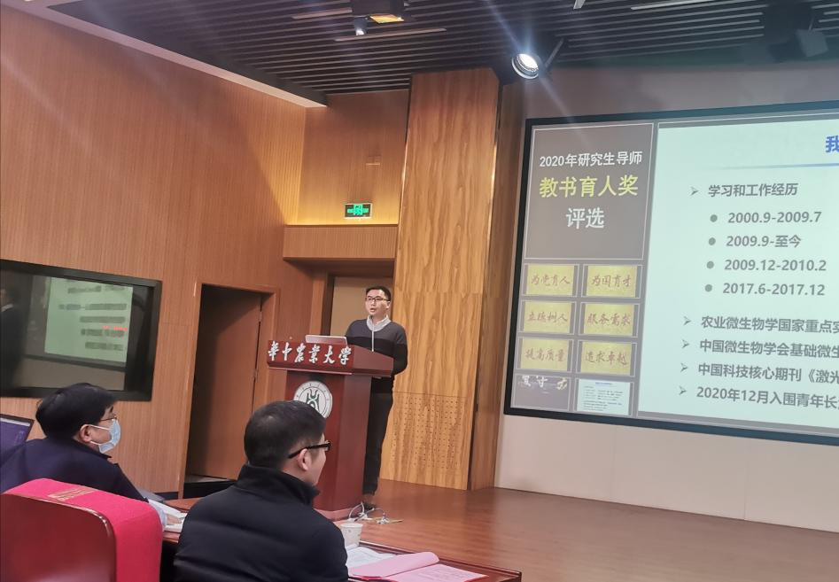 2021年1月12日,新葡萄8883官网AMG2020年研究生导师“教书育人奖”评选会在农业微生物学国家重点实验室B座报告厅举行。新葡萄官网彭东海导师与全校各学院的13位导师同台交流,展示生科导师育人风采,最终荣获研究生导师“教书育人奖”。