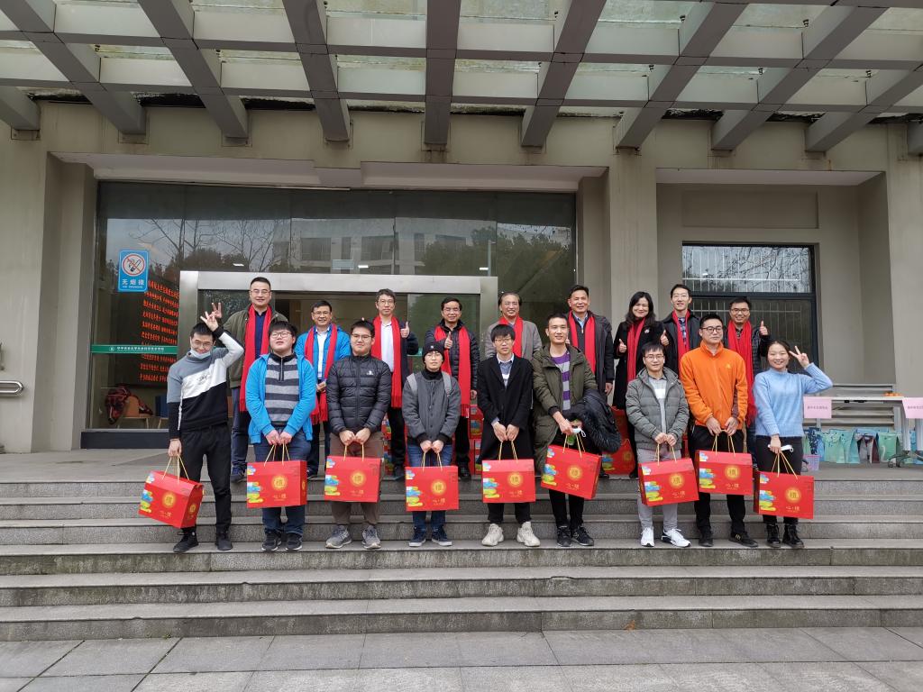 2月9日生科院领导班子在一综门口为留校学生发放礼包
