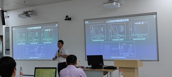 王博副研究员精彩的汇报展示引起在座师生的热烈讨论,大家纷纷踊跃提问:电子在材料与微生物之间的传递是精准可控的吗?当细胞进行分裂时,覆盖在微生物表面的材料是怎样进行分解组装的?有没有可能将捕光元件直接置于胞内呢?未来是否能实现将细胞内已有的细胞器改造为捕光单元行使功能?针对这些具有创新性的问题王博副研究员也耐心的进行了详细充分的解答,并同时发表了自己的相关见解。