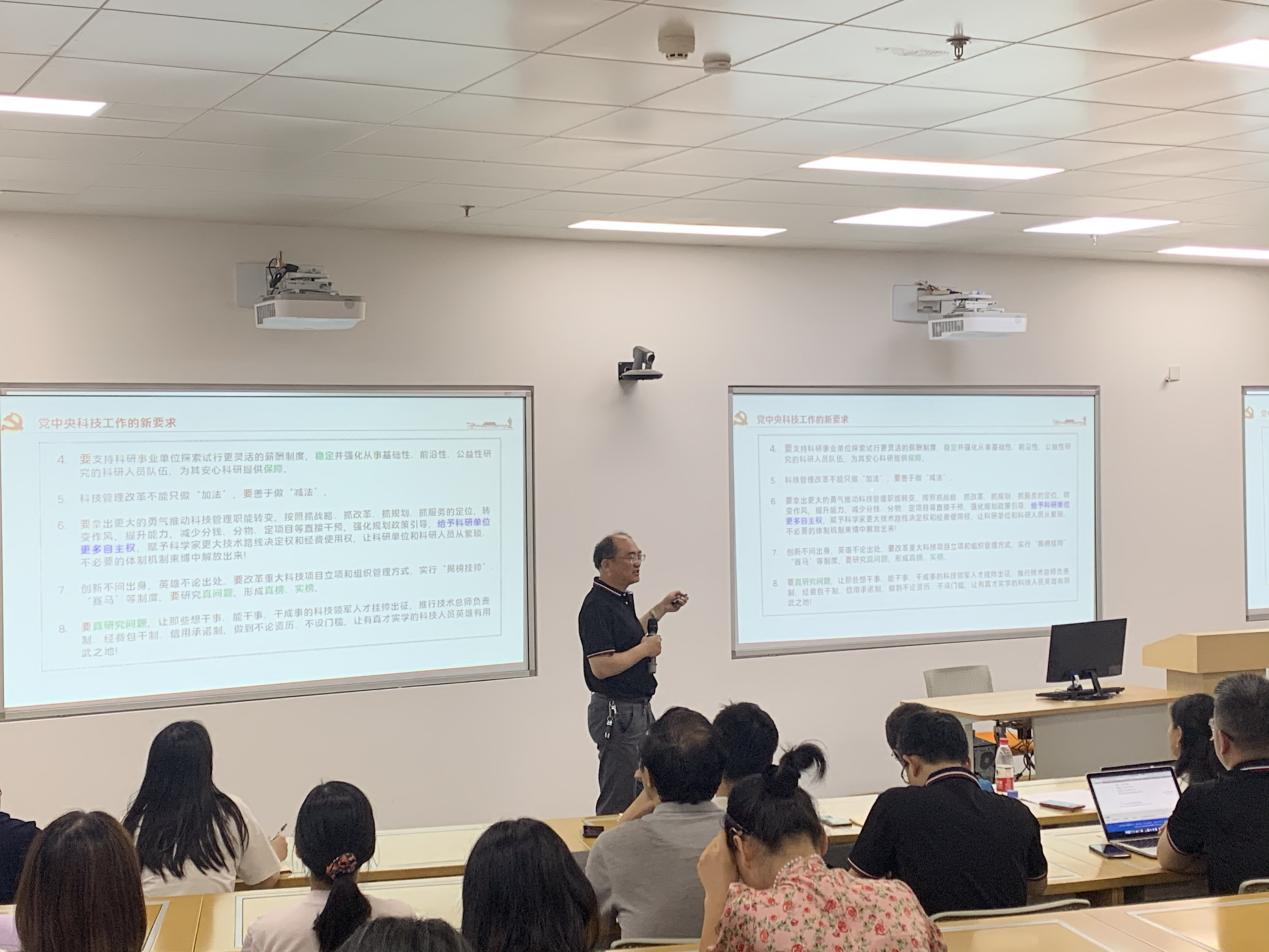 副院长孙明以“肩负时代重任,勇攀科技高峰”为主题带领全体教职工学习了习近平总书记在院士大会上的讲话。他从科技工作成就回顾、当前科技工作形势分析、党中央科技工作的新要求、总书记对科技工作未来和希望四个方面带领大家学习了总书记在中国科学院第二十次院士大会、中国工程院第十五次院士大会、中国科协第十次全国代表大会上的讲话精神。