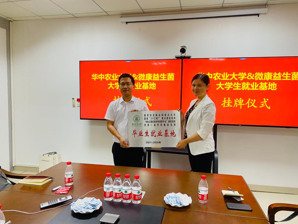 微康益生菌副总经理高福、董事长助理马张良代表微康董事长、我校校友方曙光博士对华农长期以来大力支持公司人才招聘、技术研究等工作表示感谢。高福谈到,微康益生菌当前处于IPO阶段,并已筹建二期、三期工厂,对学校毕业生有较大需求,希望今后能够在人才引进、技术研发、实习实训等多个方面与学校加强合作。已在微康工作3年的我校2018届硕士毕业生杨景艳认为,“自己所学专业与所从事岗位工作高度契合因而很有动力,微生物行业有着广阔的发展前景,对民族企业的未来充满信心”。