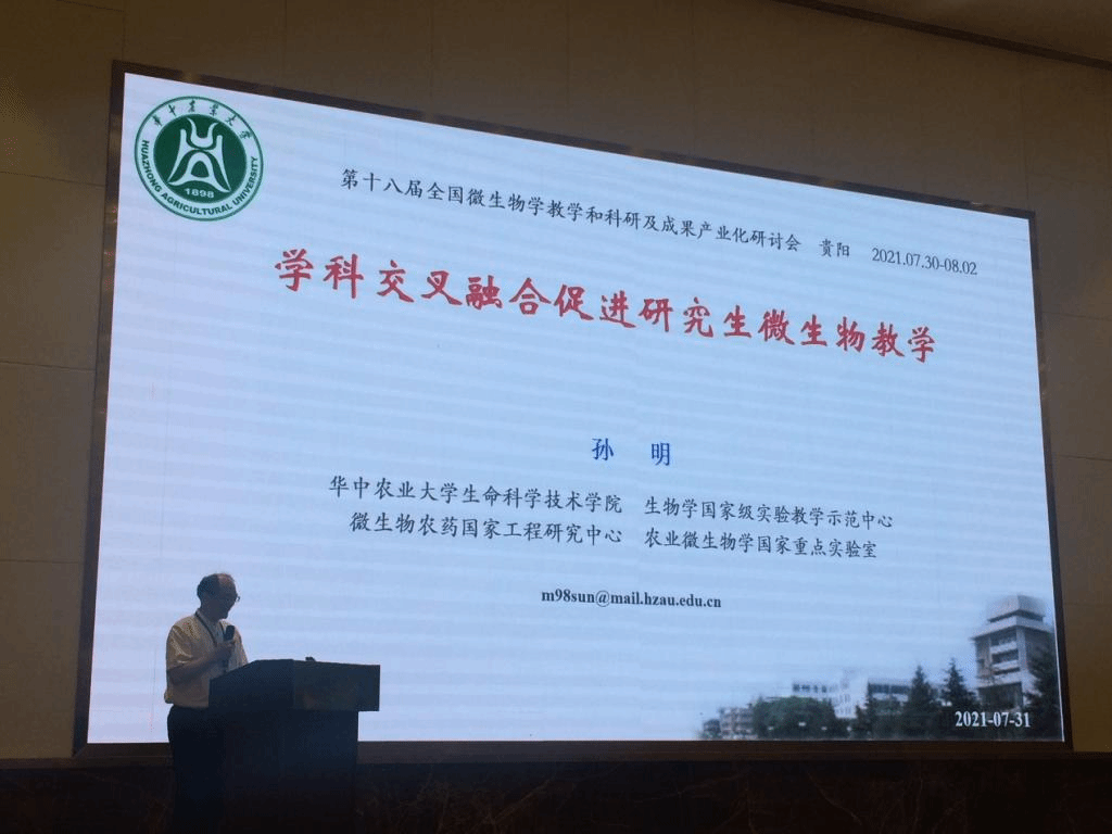 7月31日上午,新葡萄官网副院长孙明教授在大会开幕式上致辞,并作了题为《学科交叉融合促进研究生微生物教学》的报告。他认为丰富的学科交叉环境和宽广的师资研究背景,能够拓宽教师研究方向或学科的多元化与交叉融合,进而最大限度地满足高级微生物学对知识系统性和前沿的需求,同时满足多种学科对高级微生物学课程体系的要求。