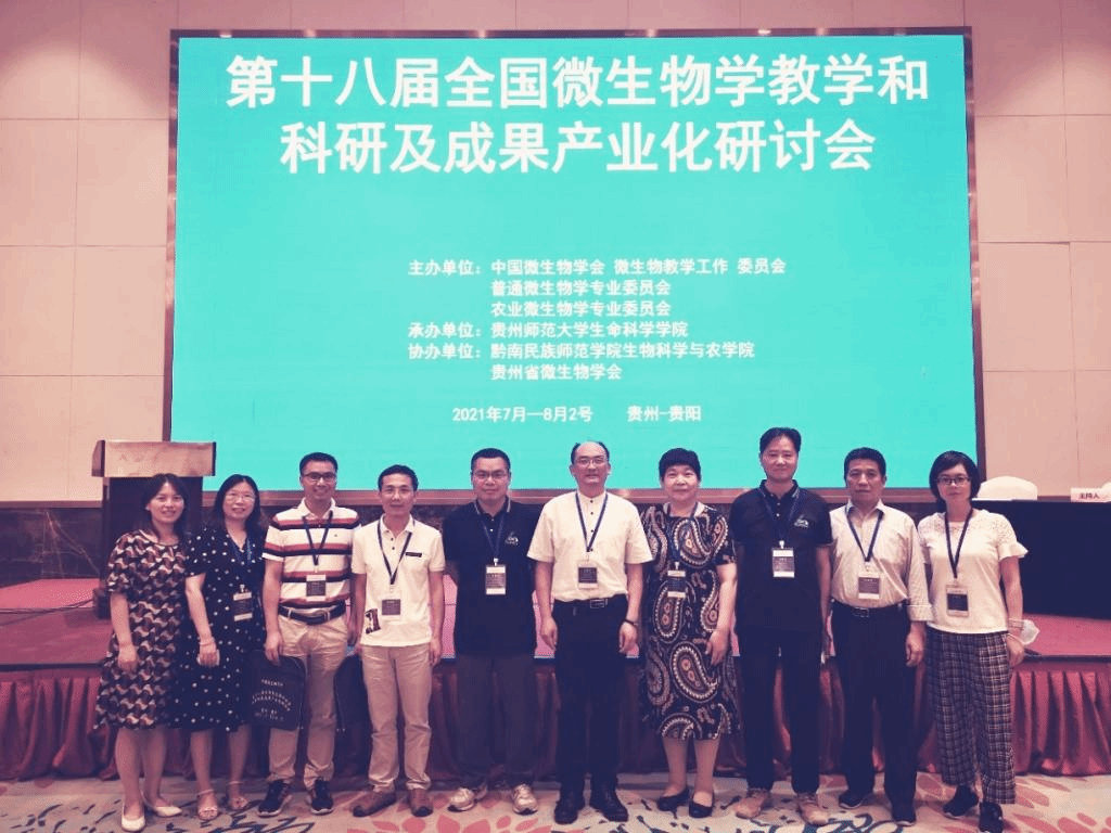(通讯员:黄凤)7月30日-8月2日,第十八届微生物学教学和科研及成果产业化研讨会在贵阳顺利召开,此次会议由中国微生物学会微生物教学工作委员会、普通微生物学专业委员会、农业微生物学专业委员会主办,由贵州师范大学生命科学学院承办,黔南民族师范学院生物科学与农学院、贵州省微生物学会协办。此次会议涵盖新时代微生物学一流课程和教学团队建设及课程思政研究、后疫情时代微生物学 “学习革命”与课程教学“质量革命、微生物学实践技能和创新人才培养(实验、实训、野外实践等)、微生物学科学研究进展、微生物研究成果产业化、微生物与科学普及等六个主题。新葡萄官网共有10位微生物学教师参加了此次会议,其中4位老师做了大会报告。