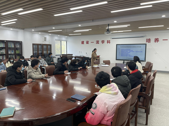 会议由生物学国家级实验教学中心副主任齐迎春主持。她首先介绍了生命科学技术实验安全管理架构,即由学院书记作为组长的实验安全小组负责全院安全管理。然后介绍了实验室安全培训会的目的和意义,强调实验室安全管理将进一步规范化,坚持对所有进入实验室的学生和工作人员进行培训考核,同时将实验室安全检查工作常态化,做到2-3周检查一次,不留任何死角。
